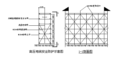 筑物周边设置3m宽外围架,外围架设安全平网一道。在主要出入口处设防护通道。防护通道长度长于6m,宽度大于洞口50cm,两侧用密目安全网封闭,上部设置两道木板防护,两道防护层间的距离为50cm。为确保工程安全,在现场设立足够的标志、宣传画、标语、指示牌、警告牌等。