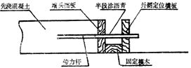 四、支立模板,可采用混凝土块顶撑模板或利用旧板接缝钻孔插入钢钎,固定模板的方法;