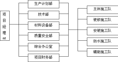 (5)建立质量目标的分级责任保证体系,将质量指标分级下达,形成由项目经理、项目工程师、职能部门、工长、班组和个人层层领导负责的质量保证体系。