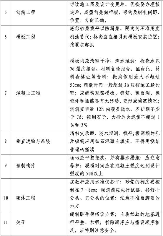 (11)混凝土浇筑前要做好试配,浇筑时要注意坍落度符合配比要求,振捣要按规定间距振捣密实,混凝土初凝后要及时养护。