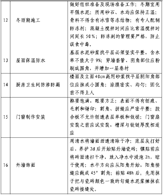(12)水、电安装应注意与土建配合,按工序及时穿插施工不得损坏土建成品。装饰工程施工应注意与土建配合,按工序及时进行穿插施工,并且应先做样板,经建设单位认定后再大面积施工。