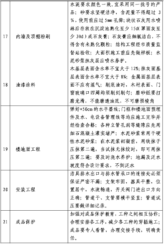 (2)合理安排各工序,减少各工种的穿插施工,特别要注意避免工序颠倒,造成对成品的破坏污染。