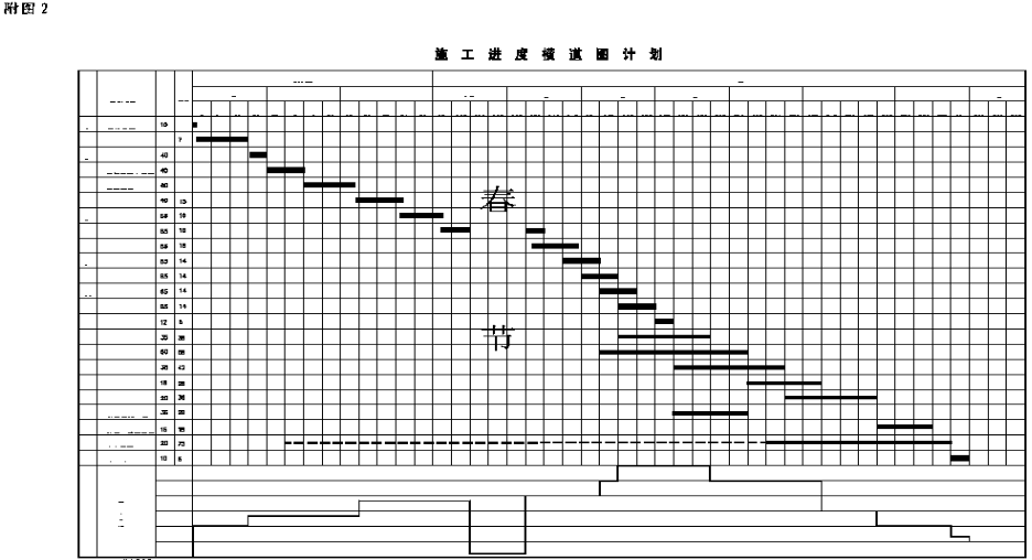 (4)春节、农忙季节施工保证措施:确保地方材料农忙时照常供应,积极与材料供应单位签订供货合同,严格按照规范要求保证材料的数量和质量,储备一定的材料,确保农忙季节的施工。稳定施工队伍,保证工程正常进行,本工程工期紧,任务重,并且要经历麦收、秋收、春节几个阶段,为了保证在此阶段施工人员的数量和施工质量,应选择不受农忙季节影响且素质较高的施工队伍,并与施工队签订合理的施工合同和制定奖惩制度,在农忙及春节施工阶段项目经理部对工程施工人员增加补助,调动施工人员的积极性,确保工程施工正常进行。