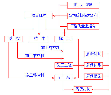 我公司针对本工程的指导思想是:质量第一,服务周到,业主满意,以质量为中心,按照GB/T19002-ISO9002《质量管理和质量保证》系列标准,建立工程质量保证体系,选配高素质的项目经理,积极推广应用新技术、新工艺、新设备、新材料,精心组织科学管理,优质高速地完成本工程的施工任务,创出武汉市乃至全国一流的精品工程。