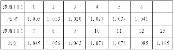(2) 采用氯化钠作为外加剂时,由专用设备配制成溶液,提前两天用冷水配制1 3(重量比)的浓溶液,将沉淀杂质清除后倒入大缸内,再加清水配制成若干种符合要求比重的溶液,用比重计测定准确后,即可作为搅拌砂浆用水。氯化钠溶液的浓度与比重的关系见表14-2。
