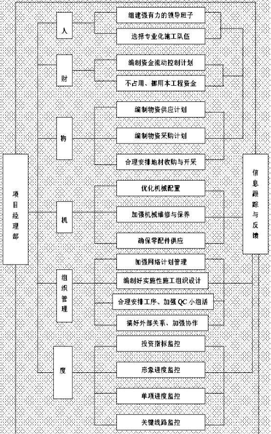 根据本合同段的工程量大小及各项管理目标的要求,在施工组织中实行科学配置,选派有隧道施工经验的管理人员和专业化施工队伍,投入高效先进的施工设备,确保流动资金的周转使用,并做到专款专用。