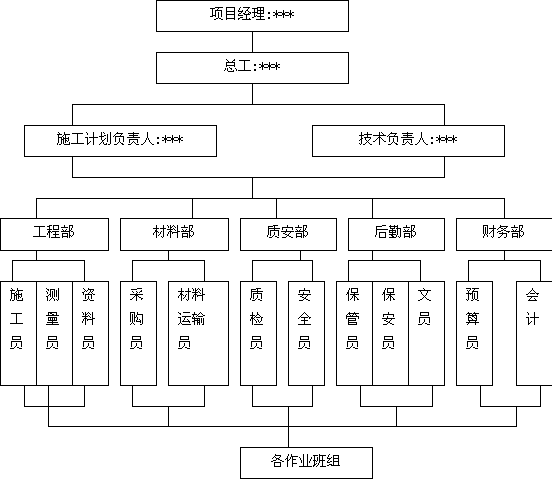 为确保工程质量,达到既定的质量目标,根据我公司的施工特点,总结以往工程的施工管理经验,我公司将成立项目经理部,指挥工程技术、质量安全、文明施工、材料设备等部门的运作,控制项目生产。