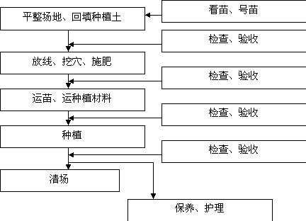 4、 绿化苗木:由采购部负责按苗木清单选择合格供应商,制定苗木采购计划,严格把好质量关。业主要求陪同号苗的,采购部应积极配合。绿化种植土应经过有关部门的检验,达到种植基质标准方可使用。一切未经鉴定并得到业主认可的材料产品,不得在本工程中使用。由业主指定供货商的,项目部应跟踪对方产品是否合格,并及时反馈业主。