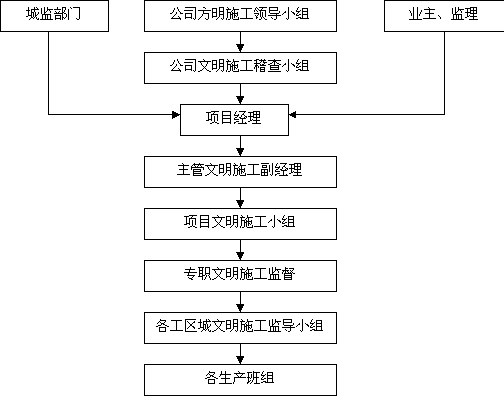 项目经理部成立“文明施工小组”,成员由项目经理部各负责人组成,负责本工程文明施工管理制度的制定、落实,并实施日检制度。专职的文明施工督导员,将全面负责监控本工程项目的文明施工工作。