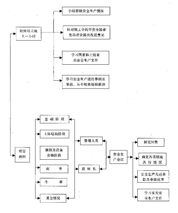 (6)每天上班前,工长要向工人交待当天生产中应注意的安全问题,开展班前安全讲话活动;