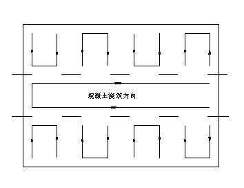 (6)、对于结构中的弧形线条,可采用先配模后安装加固的方法施工,配模方法为将弧形线条划分为若干小段,每段均用小宽度板条拼成设计形状,再在模板面钉一层镀锌铁皮,然后将配好的各小段模扳运至现场拼在一起,并与其他模板合并加固。