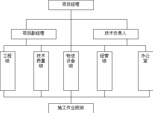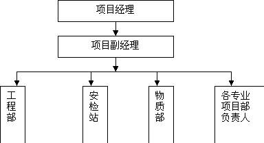 (1)按项目法施工的方式组建项目经理部,土建、结构、水电专业作业队各派一名领导进入项目领导班子,为工程施工中各专业工种的配合与协作提供有力的组织保证。