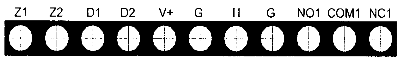布线要求:信号总线Z1、Z2采用RVS型双绞线,截面积;电源线D1、D2采用BV线,截面积≥1.5mm2;V+、G、I1、G、NO1、COM1、NC1采用RV线,截面积≥1.0mm2。
