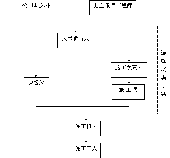 3、 项目产品质量要接受公司质监部门全过程的监控管理。质量管理实行“三检制”,专业工长对产品质量直接承担责任,项目质监部门负责监督责任,产品质量综合反映两者的管理成果,出现产品不合格,分管的专业工长为第一管理责任人,肇事者承担主要责任,质量监督部门负次要责任,造成不合格品的其他相关专业、部门人员负连带责任(含经济赔偿)。