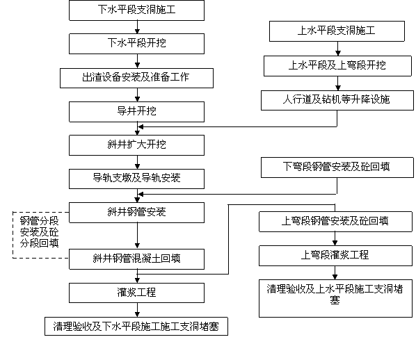 压力钢管段施工程序见下图,本图中仅包括一个斜井段,即上斜段或下斜段,两个斜井段施工程序相同: