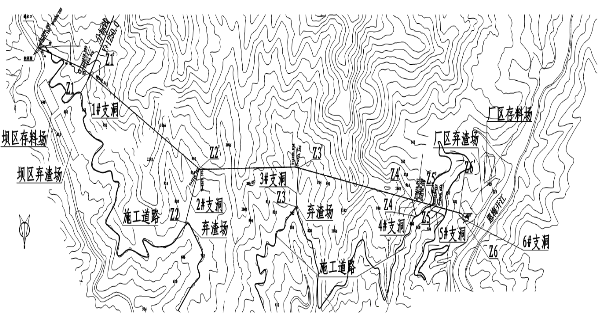 至各施工支洞口施工临时道路沿相应的等高线布置,施工道路长约28.1km,宽4.0m,路面结构型式为30cm泥结石路面。施工临时道路的布置详见施工总平面布置。