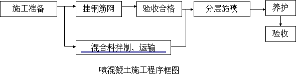 ⑷ 混凝土喷射应分层进行,达到设计厚度,如果作业层间隔时间超过1h,则应用钢制刷将表面乳皮清除,并用风和水清洗干净后再继续作业。