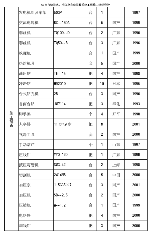 1.1.1 工程名称:xx 室内给排水、消防及自动报警系统工程。