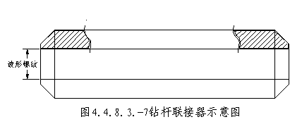 4.4.8.3.6.3.为了确保钻杆接头有足够的强度、刚度和韧性,钻杆连接套应与钻杆材质一致,两端加工内螺纹(配合钻杆首位端外螺扣),连接套的壁厚≥10mm。连接套及连接方式见图4.4.8.3.-7。