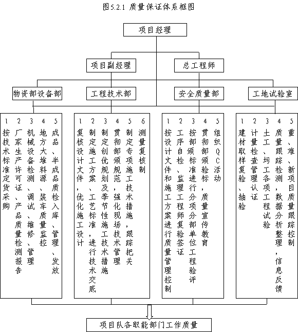 总工程师:在项目经理领导下,负责本工程的全部施工技术管理工作和质量检测工作。