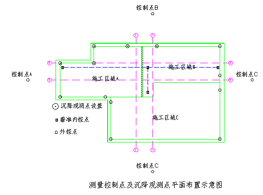 5.信息施工:基坑开挖前做好支护结构信息施工前的基点设置,开挖过程中设专人随时监测基坑变化,同时做好临近建筑沉降观测记录,防止意外事件发生。如基坑支护变形速度快,项目部应向上级有关部门汇报的同时,采取果断措施。