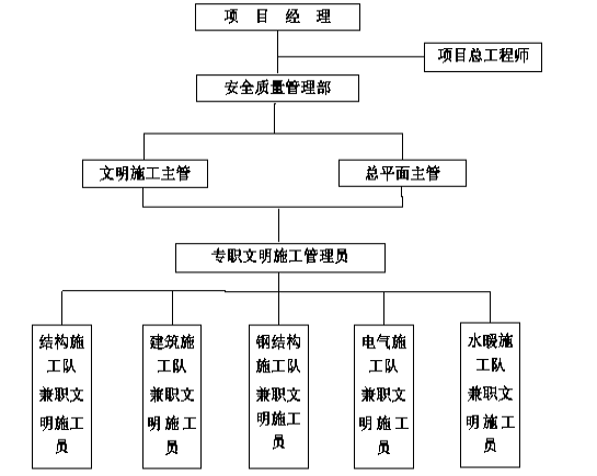 本工程保卫、消防工作采取职责清晰、责任落实、层次分明的管理模式。