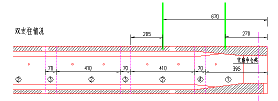 【答疑1】:施工单位提出的临时墩方案,纵横向受力不均匀,难以有效发挥临时墩的作用,设计单位认为:在保证顺桥向同侧两临时墩对称于桥梁纵轴线,横桥向同侧临时墩尽量平行于桥梁纵轴线时,可以对原设计临时墩进行调整,但临时墩内移的距离应控制在0.5m范围之内。 ●疑问2:南场大桥变更设计后, 8、9、10#墩中心里程减小1.01m,导致7—8、10-11#墩间距变化,特大桥站后预留表中“接触网基础中心里程”及“预留位置”是否变化?根据接触网专业设计说明2“梁上接触网支柱基础中心至相邻梁缝中心距离一般为8m”可认为不变化。但第4条说明中“如桥梁孔跨发生变更应及时通知接触网专业进行调整”。 【答疑2】: “节段拼装梁接触网基础预留设计说明” 1、拼装梁上接触网基础设置分:单支柱、双支柱、支柱带下锚拉线三种情况,设计原则为: (1)根据桥梁振动及接触网荷载要求,接触网基础尽量靠近梁端; (2)支柱基础与下锚拉线基础同梁设置,基础间距不小于7m。 2、接触网基础布置示意图